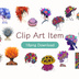 「花の帽子の女の子・サイケデリック版」クリップアートシリーズ(全18種)