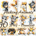 50枚のかわいい動物の覗き見クリップアート バンドル|チビ動物 イラスト セット|PNG透過