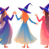 ハロウィンを彩る可愛いキャラクターたちを絵本調に描いたクリップアート素材です。