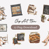 【カフェシリーズ】水彩アンティーク風クリップアート12種類セット/背景透過PNG