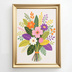 この作品は、カラフルで調和のとれた花束をモチーフにしたイラストレーションです。配色は非常にバランスが良く、ピンク、オレンジ、紫、黄色といった鮮やかな色彩が緑の葉と組み合わさることで、全体に明るく華やかな雰囲気を与えています。花や葉の形はシンプルかつ幾何学的に整えられており、観る人に心地よいリズム感をもたらします。また、平面的で装飾的なタッチはポスターアートやグリーティングカード、テキスタイルデザインにも適しており、幅広い用途での展開が可能な作品です。 アートとしての完成度は高く、特に「明るさ」「幸福感」「親しみやすさ」を表現する点で非常に成功しています。 ------------------ 📂 含まれているファイル 🖼 印刷用 JPEG ファイル(高解像度/300 dpi): A3サイズ(297 x 420 mm / 11.69 x 16.54 inches) A4サイズ(210 x 297 mm / 8.27 x 11.69 inches) 📱 スマートフォン用壁紙: 1080 x 1920 ピクセル – JPEG形式 ※AIを使用して作成したデジタルダウンロード商品です。物理的なプリントや額縁は含まれません。 📌 注意事項 個人利用または非営利目的にご利用ください 再配布・再販売は禁止されています デジタル商品のため、返品・返金はできません 開運や金運上昇を保証するものではありません。 プリントや額縁などの物理的な商品は発送されません ご不明な点がありましたら、お気軽にお問い合わせください。