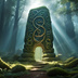 風化した表面に刻まれたルーンが淡く輝き、霧を透かす光が幻想の気配を呼び覚ます。