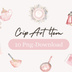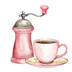水彩ピンクのキッチンアイテム クリップアートセット(PNG透過・10点)