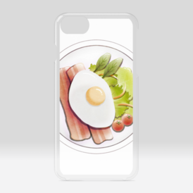 ベーコンエッグサラダ クリアiPhoneケース 白色(ホワイト)