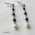 【送料込み】天然石ラピスラズリとジャパンヴィンテージグラスパールのピアス