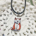 ペンダントトップ部分はプラ板で可愛らしいポーズのカラフルな猫を描きました。色落ち防止の為に上からコーティング用のレジン液を塗布しています。 ネックレス部分はブラック紐とプラチナ色のシルバーで長さは約全長45㎝前後+アジャスター3.5~5.5㎝前後です。素材はワックスコードと亜鉛合金でアレルギーには非対応です。 シンプルで可愛らしい猫好きさんにオススメです。あくまでもハンドメイド品であることをご了承ください。 ※猫を飼育しています。注意をはらい作成、発送致しますが見落としがある可能性があります。アレルギーのある方はご注意下さい。 ※あんしんBOOTHパックにて発送致します。別途送料がかかります。