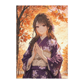 この商品はpixivFACTORYで作られた商品です。サンプル画像は完成イメージのため、実物と異なる場合があります。 夕暮れに染まる紅葉道を背景に、紫の着物を纏った女性が静かに佇む姿。 光と影が溶け合う中、どこか懐かしさを感じる秋の瞬間を描きました。 和の情緒を感じたい方におすすめのポスターです。