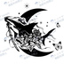 ダークシャークと月夜の花タトゥー - 不思議な海と鮫のマーク vroid/vrchatテクスチャ-背景透過png