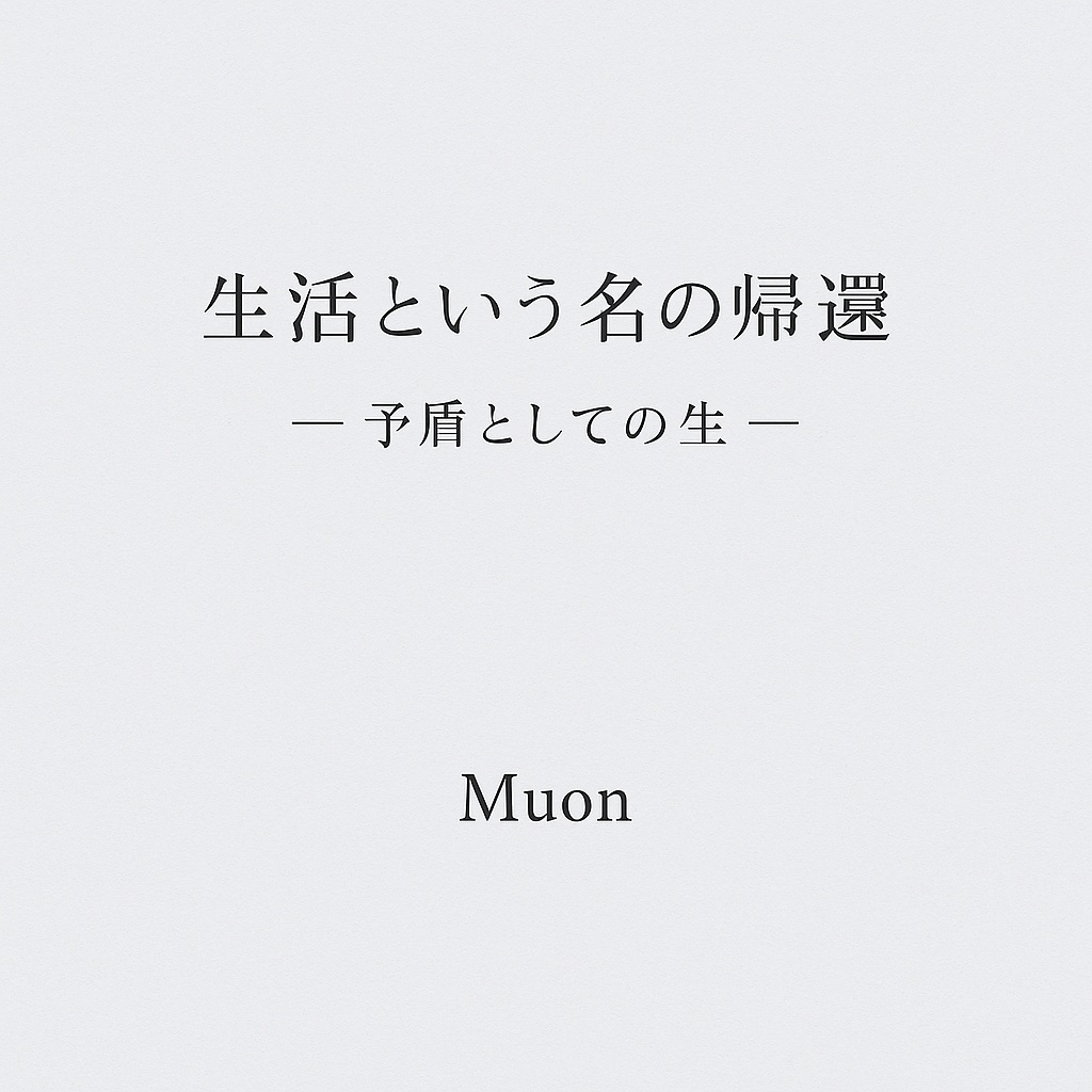 muon-philosophy生活の中の帰還 ー矛盾としての生ーDigital200 JPY放入購物車Buy a GiftAbout Gift考えすぎた日々の後に、静けさだけが残った。 生と死、虚無と実生活。その間に漂う「矛盾としての生」を描いた哲学的エッセイ。 光と影、音と沈黙、意味と無意味。 その狭間にある「生きているという事実」をそっと、すくい取るように綴りました。 Muon 第二作『生活という名の帰還』muon-philosophyVisit FANBOX!Illustrations秋の林道にてmuon-philosophy200 JPYIllustrations少女の日常muon-philosophy200 JPYIllustrations「風を抱いて – 夏の芝生にて」muon-philosophy200 JPYIllustrations夏の灯 – 花火を見上げて」muon-philosophy200 JPYIllustrations午後、電車の窓辺でmuon-philosophy200 JPYIllustrations午後の余白」 – Café Portrait by Muonmuon-philosophy200 JPYIllustrationsプールから上がった幻想的な美女muon-philosophy350 JPYEssays理由のない買い物muon-philosophy200 JPYEssays衰退の美学と日本人の矜持 ~経済の終わりに見える、もう一つの豊かさmuon-philosophy200 JPYEssays在ることの絶対muon-philosophy200 JPYEssays世界はいつも設計ミスで出来ているmuon-philosophy200 JPYEssays仮想の人間論~虚無と意識のあいだでmuon-philosophy280 JPY查看更多
