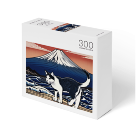 浮世絵風の富士山と猫