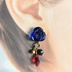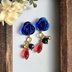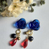似たようなデザインを以前作りましたが、ちょっとリメイクを。 レジン製の青薔薇に、コインカットの青金石とゴールドカラーのパール、ドロップカットのライトシャムカラーのガラスビーズを下げました。 普段とは違う仕入れだったのですが、このガラスビーズが非常にきれいな発色なんです。カットも繊細で、もう少し多めに仕入れておけばと後悔しております。 福島といえば、何でか薔薇を青くしてしまうのは仕様です。 金具は背面貼り付けとなります。 ピアス・イヤリング両対応ですので、お好みの金具でご購入下さい。 ●アレルギー対応商品について 当店ではピアス、イヤリング、チェーン、アジャスター等にサージカルステンレス316を使用時明記しております。 体質には個人差がありますので、必ずしもアレルギーが出ないという保証ではございません。 樹脂ピアスも取り扱っておりますので、そちらもご検討下さい。 ●色褪せ・錆について ステンレス以外の、錆びやすい材質のパーツとの組み合わせの場合、そのパーツの錆びがステンレス表面に付着し「もらい錆」により錆びてしまうケースがございます。 その際は錆びをすぐに除去するようにしてください。 また、水に濡らしたりアルコール・汗等が付着しないようご注意下さい。 ●レジン作品について レジン作品は非常に繊細な為、強い衝撃を与えたり、高温・直射日光に長時間さらさないようご留意下さい。 また、水濡れやアルコール、汗などは劣化の原因となる為、触れないようにご注意下さい。 ●天然石について 当店では天然石を使用している場合、その種類を明記しております。天然石の一部は長時間の直射日光や水分に弱いものが多いです。アクセサリー用に加工されているものを仕入れておりますが、水に濡らしたり長時間直射日光にさらさないよう、ご注意下さい。