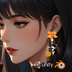猫ちゃんが釣りをしているハロウィンかぼちゃのイヤリング