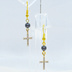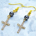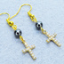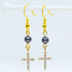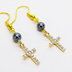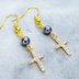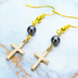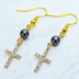 ゴールドカラー ラインストーンが輝くロザリオとスワロフスキーパール(ガンメタル)のコンパクトなピアス サージカル可