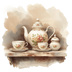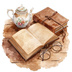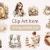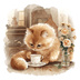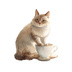 【猫とティータイム】アンティーク風クリップアート10点セット|PNG背景透過