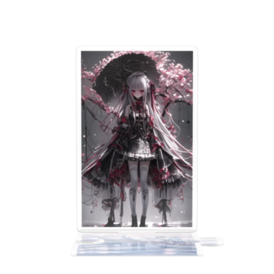 この商品はpixivFACTORYで作られた商品です。サンプル画像は完成イメージのため、実物と異なる場咲いては散る、春の夢。 闇に溶けるように微笑む少女は、桜とともに儚く輝く。 黒と紅のドレス、繊細な傘の装飾、 そして一瞬の哀しみを閉じ込めた瞳。 見るたびに心を奪われる、美の化身。 デスクに、棚に、夜桜のような一輪の静寂を。合があります。