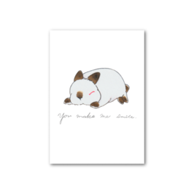 【アナログイラスト】you make me smile うさぎさんはいつだって人間を笑顔にしてくれる!!!! 幸せにしてくれる立ち耳の鼻ポチ(ヒマラヤン)チョコレートさんの寝顔を描きました 原画と同じようなサイズ感やイメージで楽しんでもらいたくて、あえて背景は白くしております。 原画の雰囲気を楽しんでもらえたら嬉しいです また、英語につきましてはまだ勉強中なので、ちょっと不自然な表現があるかもしれません。 気持ちはしっかり込めて一つ一つ考えて作っていますので、あたたかく見守っていただけたら嬉しいです。 ※こちらはアナログイラストを取り込んだ作品です。手描きならではの温かみや魅力を楽しんで欲しいという想いから鉛筆の下書きや線のはみ出しもそのままになっております。ご了承ください。 #うさぎ #立ち耳うさぎ #ネザーランドドワーフ #鼻ポチ #ヒマラヤン #チョコレート この商品はpixivFACTORYで作られた商品です。サンプル画像は完成イメージのため、実物と異なる場合があります。