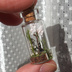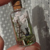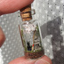 瓶・高さ約40mm 直径約15mm 主な材料・ガラス瓶、砂溶きボンド、エポキシパテ 箱サイズ56×35×17mm 灯火には蓄光塗料を使用しておりますので暗闇やUVライトで蛍光します。 ※注意事項 到着時の破損につきましては対応いたしますのでご連絡願います。 微に入り細に入り実物を見た際に見える細かな傷、 印象の違い、想像されていた色味との違い等 写真から判定できる明確な破損以外の事柄に関しては 対応できかねますのでご了承願います。 全て一点物になりますので個体差があります。 ガラス製品なので思わぬ衝撃で破損する恐れがあります。注意して取り扱ってください。 蓋のコルクは外れる恐れがあるのでアクセサリ等として使用することは絶対にお止めください。 収れん火災や劣化を避けるために直射日光を避けカビ予防のために高温多湿を避けて保管してください。 小さなお子様やペットがいるご家庭は誤飲にお気をつけください。 事故が起きましても責任を負いかねますので予めご了承ください。