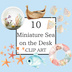 机の上の小さな海|ミニチュアクリップアートセット