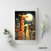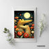満月を祝うサバンナの仲間たち、印刷可能なポストカードデザイン ver.1