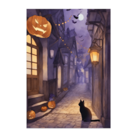 この商品はpixivFACTORYで作られた商品です。サンプル画像は完成イメージのため、実物と異なる場合があります。 月明かりに照らされた静かな通り、揺れるランタンと黒猫のシルエット。 幻想的な光の中に漂う静けさが心を落ち着かせる一枚です。 秋の夜を優しく彩るアートポスターです。
