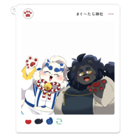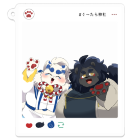 ぐ~たら神社の黒井獅音&犬井狛白の公式グッズ! おでかけ先でつい写真を撮りたくなってしまう、SNS風フォトフレームキーホルダーです。 ただし2匹ともBIGサイズ!うまくフレームに被写体を収められるでしょうか!? ファンならぜひ手に入れたい、実用性バツグンのアイテムです! イラスト:ヒャク様(https://x.com/hyaku1063)