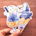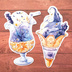 水彩で描いたイラストを使用したダイカットカードです。 ラベンダークリームソーダとラベンダーソフトクリームを切り取ってカードにしました。 裏面は無地なので、メッセージを書いたり栞にしたりと色々な使い方でお楽しみください♪ ラベンダーの香りがするような甘いデザインとなっております♪ 美味しそうなイラストと優しいラベンダーカラーとともに楽しんでいただけたら嬉しいです。 各1枚ずつ合計2枚入です。 マシュマロCoCという用紙で、筆記性に優れたサラサラとした触り心地です。 印刷部分は控えめに光沢があります。 「FSC森林認証」を取得した環境に優しい用紙です。 ・。*・。*・。*・。*・。*・。*・。*・。*・。*・。*・。*・。*・。*・。*・。* ~スイーツラインナップ~ ・「ラベンダークリームソーダ~Lavender Cream Soda~」 ラベンダーカラーがとっても綺麗なクリームソーダ。 ラベンダーの香りがふんわり香り、レモンの爽やかさが口いっぱいに広がります♪ くまさんの形をしたレモンがポイント♪ バニラアイスの甘味としゅわしゅわの炭酸のハーモニーが楽しい一品です。 ・「ラベンダーソフトクリーム~Lavender soft cream~」 ラベンダーとバニラのミックス味♪ ラベンダーの香りがふんわり香り、爽やかで濃厚なソフトクリームになりました! 食べられるエディブルフラワーを散らして黄色をアクセントに。 ラベンダーの模様が入ったコーンとくまさんのイラストが入ったスリーブがポイント♪ ・。*・。*・。*・。*・。*・。*・。*・。*・。*・。*・。*・。*・。*・。*・。* ◯サイズ:各サイズ約たて120×よこ65㎜ ◯素材:マシュマロCoC 片面フルカラー #ラベンダー #クリームソーダ #ソフトクリーム #くま #可愛い #おしゃれ #パープル #紫 #レモン #アナログ