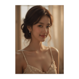 この商品はpixivFACTORYで作られた商品です。サンプル画像は完成イメージのため、実物と異なる場合があります。 夕暮れの光をまとった1950年代風の女性。淡いベージュのドレスにパールがきらめき、静かな微笑みが時を超えた美しさを感じさせます。