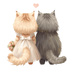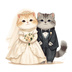 猫の結婚式A 〜パステル絵本風クリップアート13点セット|PNG背景透過