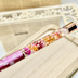 ⑯猫柄ハーバリウムボールペン本体メタリックピンク×オレンジ金木犀入りハンドメイドドライフラワー文房具筆記用具プレゼント推し色