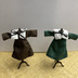 ねんどろいどどーる向けのAラインワンピースと付け襟のセットです。 コットンブロードでワンピースをお仕立てし、襟は白のローン生地でお作りしました。 ワンピースの襟ぐりからは、アクセントに差し色の接着芯がのぞいています。 後ろ全開きメカニカルファスナー留め仕様です。 付け襟はスクエア型に仕上げ、お好みに合わせて、両側共にお使えいただけます。 襟のリボンはすぐに解けるようになっておりますので、お好みの結び方でご利用ください。 グリーンとダークブラウンの二色展開です。 付け襟は別のお洋服に合わせてご利用いただくことも可能です。 全て手縫いでお作りしておりますので、個体差がございます。予めご了承ください。 端処理にほつれ止め液と接着芯を使用しております。 チャコペンとして、淡色の消えないペンを使用しております。なるべく切り落としておりますが、多少残っている部分もございます。こちらは不良品ではございませんのでご了承ください。 メカニカルファスナーに針穴が空いている部分がございますが、こちらはまち針の跡ですので、不良品ではございません。ご理解の上お買い求めください。 長時間着せたままにしますと、ボディに色移りする可能性がございますのでお気をつけください。 縮みや破損の原因となりますので、お洗濯はお控えください。 なるべく実物のお色味に近づくように撮影しておりますが、ご利用の環境によっては、イメージと異なる場合がございますので、予めご了承ください。
