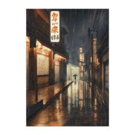 この商品はpixivFACTORYで作られた商品です。サンプル画像は完成イメージのため、実物と異なる場合があります。 夜の雨に濡れた路地。灯籠の光が水面に揺れ、静かな時を照らす。水彩と墨のにじみが生み出す、郷愁と温もりのアーバン幻想です。