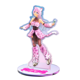 オーロラアクスタ - 100 × 100mm雨色硝子さんのきれいなイラストがオーロラアクリルスタンドになりました。 台座には豹崎専門店ロゴをあしらい、とても落ち着きのないデザインとなっております。