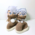 カフェモカをイメージしたモカブラウン&ホワイトの手編みニット帽・マフラーセットです。てっぺんのぼんぼんはサイズを2種類用意しました(マフラーは共通デザイン)。ぬいちゃんのお好みに合わせてみてください◎ ・exマスコット(10cmぬい)、ほわぬい(8cmぬい)どちらも着用できます。 ○サイズ ニット帽・被り穴直径約5cm、平置きよこ×たて=約9×6.5cm(ぼんぼん含む) ※伸縮性はあまりありません マフラー・約26cm ※10cmぬいで一周プラスアルファくらいの長さ 〇その他 ・ニット帽の折り返し部分は接着剤で固定しています(縫い付けなし)。強い力でひっぱったりしないようご注意ください。 ・ハンドメイド作品のため、接着剤付着やパーツの位置ズレ等にご理解お願いします。 ・サイズ感は、ツイステEXぬいぐるみをモデルに製作しております(ほわぬい・ピコぬいも着用可能確認済)。 ・髪の毛や頭のデザインによって被せづらい場合がございます。ぬいちゃんの形状を今一度ご確認ください。 ※商品画像中のぬいぐるみ等小物は付属しません。 ※発送方法は追跡機能付きのクリックポストを予定しています。