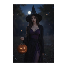 ポスター - B2この商品はpixivFACTORYで作られた商品です。サンプル画像は完成イメージのため、実物と異なる場合があります。 静かな森の夜、紫のドレスに身を包んだ魔女がパンプキンランタンを掲げる。月明かりと魔法の粒が夜空に溶け、幻想的なハロウィンの世界が広がります。
