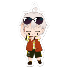 6周年記念アクリルキーホルダー 夢見光 救命胴衣を着て時間を確認し余裕な表情