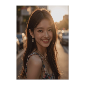 ポスター - B2この商品はpixivFACTORYで作られた商品です。サンプル画像は完成イメージのため、実物と異なる場合があります。 夕陽に包まれた街角で、優しく微笑む女性の姿。 ネックレスが光を受けて輝き、都市の洗練を感じさせるモード系ポートレート。 夕暮れの温かさとスタイルをあなたの空間に。