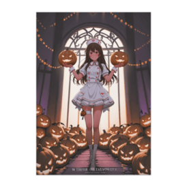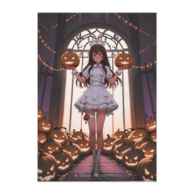 ポスター - B2この商品はpixivFACTORYで作られた商品です。サンプル画像は完成イメージのため、実物と異なる場合があります。 ハロウィンの夜、かぼちゃランタンに囲まれた美しいナースが微笑むポスター作品。ファンタジーではなく、現代の女子が仮装を楽しむリアルなコスプレの瞬間を描いた一枚です。ノヴァフラットによる現代アニメイラスト風で、柔らかな照明が彼女の笑顔を包みます。