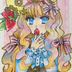 創作アナログ原画 うさぎ少女といちご ポストカードサイズ