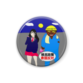 移民政策反対缶バッジ!