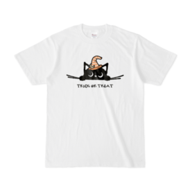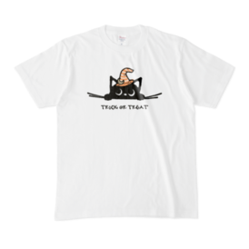 Tシャツ - XL - 白魔女帽子をかぶってご機嫌の黒猫君です♪