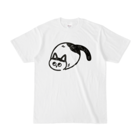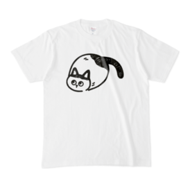 Tシャツ - XL - 白白黒ブチ猫の丸っこいづらねこ君です!