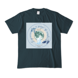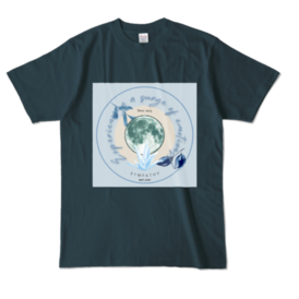 カラーTシャツ - XL - デニム (濃色)青を基調としたTシャツ。 クリスタルをイメージして全体的に輝かしい印象にしました。 カラーはデニム (濃色)になります。 サイズはS,M.L,XLあります。 この商品はpixivFACTORYで作られた商品です。サンプル画像は完成イメージのため、実物と異なる場合があります。