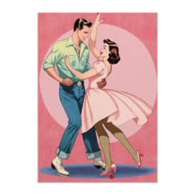 ポスター - B2この商品はpixivFACTORYで作られた商品です。サンプル画像は完成イメージのため、実物と異なる場合があります。 1950年代の甘い恋とロックンロールを描いたレトロポスター。ピンクのドレスが揺れる瞬間、青春の輝きが蘇るような懐かしさを感じる一枚。
