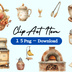 アンティーク風 水彩画キッチン用品クリップアート ナンバー③(背景透過PNG・15種類セット) |Antique Watercolor Kitchen Tools Clipart Vol.3 – 15 Items