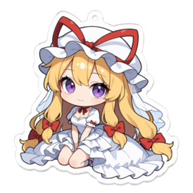 アクリルキーホルダー - 70 x 70 (mm)(キャラのみ)東方Projectの賢者、八雲 紫が、純白のウェディングドレスを纏った愛らしいチビキャラ・アクリルキーホルダーになりました。 鍵やバッグ、ポーチなど、貴方の「愛用品」に取り付けて、紫様との愛の境界をなくしましょう。 🔑 バイカー・ライダー必携の「お嫁さん」 🔑 ✅ 【愛のドライブパートナー】 バイクや車の鍵に付ければ、ツーリングの安全を「境界を操る程度の能力」で守ってくれるかも?常に貴方を見守る、心強いお嫁さんです。 ✅ 【どこにでも連れ歩ける】 カバンやリュックに付けて、通勤・通学、イベント会場、そしてもちろんツーリング先にも!持ち運びやすいアクキーだからこそ、「俺の嫁」への愛を密かに、そして強力にアピールできます。 ✅ 【最強の可愛さ】 ウエディングドレス姿のデフォルメ(チビキャラ)デザイン。鍵を開けるたび、カバンを見るたびに、その愛らしい姿に思わず顔がほころびます。 ✅ 【八雲紫ファンへ】 幻想郷の賢者を、いつでもポケットに、バッグに。普段使いしやすいサイズとデザインで、東方Projectファン、八雲紫ファンの推し活を強力にサポートします。 さあ、このアクリルキーホルダーで、紫様との「愛の同伴」を叶えてください! この商品はpixivFACTORYで作られた商品です。サンプル画像は完成イメージのため、実物と異なる場合があります。