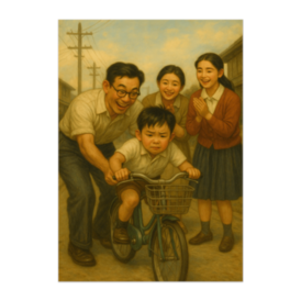 ポスター - B2この商品はpixivFACTORYで作られた商品です。サンプル画像は完成イメージのため、実物と異なる場合があります。 お父さんに後ろを支えられながら、初めての自転車に挑む少年。昭和の路地に響く笑い声が聞こえるような、懐かしい情景です。