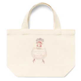 トートバッグ - S - プリント面積小薄紫色のバラの花冠を付けた、かわいい文鳥さんのイラストです。 淡い色合いのパステルシルバー文鳥さんが、モデルになってくれています。 ウインクした姿がとっても可愛いです。 サイズは、30㎝×20㎝×マチ10㎝、4ℓなので、ちょっとしたお出かけやお弁当などを入れるのにピッタリです。 この商品はpixivFACTORYで作られた商品です。サンプル画像は完成イメージのため、実物と異なる場合があります。