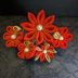ご覧いただきありがとうございます。 一越ちりめんを使用した赤と金の豪華な髪飾りのセットです。 15足コーム1個 10足コーム2個 Uピン飾り5個 藤下がり飾り5本 水引淡路玉下がり飾り1本の豪華なセットになっています。 藤下がりにはカニカンが付いており取り外しが可能になっています。 付属のUピンに付けて頂くと藤下がり単体で飾る事もできます。 また大輪のコーム飾りやUピン仕上げの小花も多めのセット内容になっておりますので 色々なアレンジをお試し頂けます。 帯や襟元などにも飾る事もできます。 色々アレンジして飾ってみませんか♪ サイズは写真を参考にしてください。 1つ1つ丁寧にお作りしていますが 素人による手作り作品ですので接着剤のハミ出しや歪み等がある場合があります。 ご理解頂けると幸いです。 ちりめん生地は水に弱く濡れると縮んでしまいます。 また長時間の圧迫でも変形してしまいます。 ご使用時や保管には十分にご注意ください。 実際の色はお使いのモニターによって多少異なって見えることがあります。 ご了承ください。 発送は郵便局からの定形外郵便での発送になります。 土日、祝日の発送は出来ません。