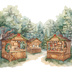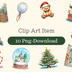 海外パークのクリスマスをテーマにした、水彩画風の可愛いクリップアートセット