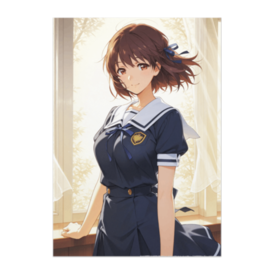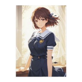 ポスター - B2この商品はpixivFACTORYで作られた商品です。サンプル画像は完成イメージのため、実物と異なる場合があります。 午後の光が差し込む教室で、ネイビーのセーラー服を着た少女が穏やかに微笑む。柔らかな風と光が織りなす、青春のワンシーンを切り取った作品。清楚でエレガントな印象が漂います。